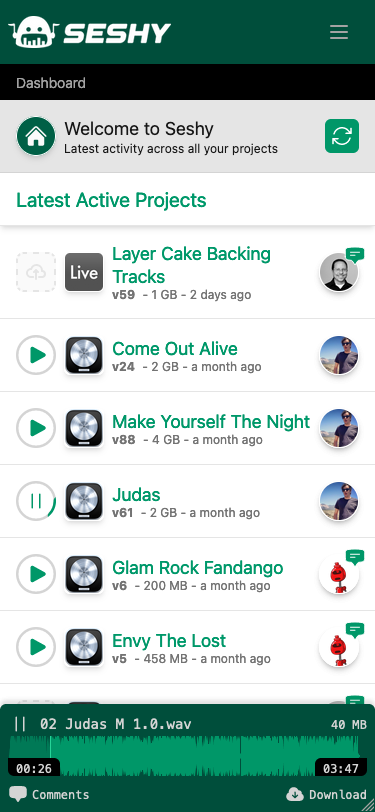 You can't always be in the studio, so Seshy makes it easy to keep up with your projects from anywhere.
