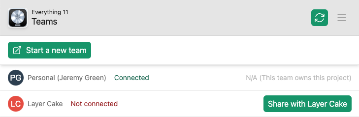 Teams make it easy to share your projects with your collaborators. Anybody who starts a new project can share it with the entire team in one click.