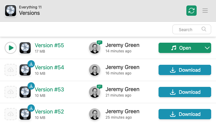Whenever you upload a new version you can add a short comment to let other team members know what you've done. This makes it easy to find particular versions.